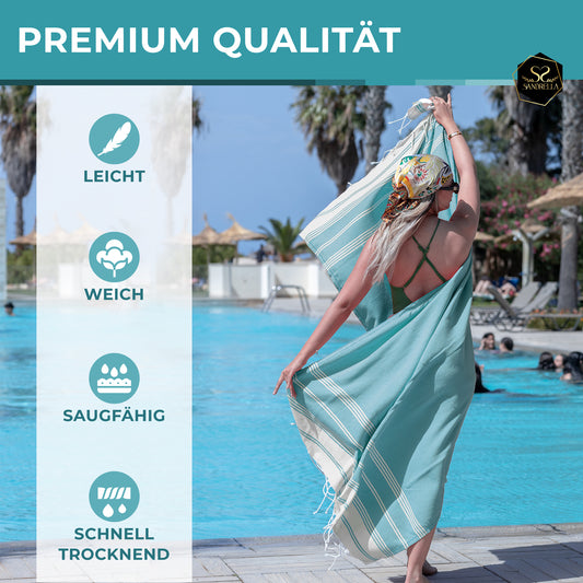 Doppelpack Hamamtuch 100 x 200 cm I blaugrün & beige