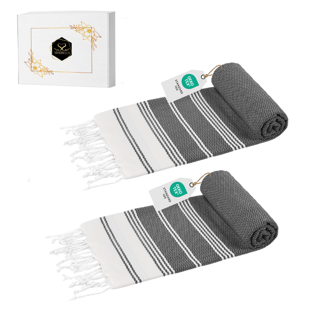 🧺 100 X 200 CM – Du genießt dein Leben im Park, am Pool oder im Sand. Das große Hamamtuch mit den Abmessungen 100 x 200 cm eignet sich zur Mitnahme. Im Rucksack ist es klein und leicht, ausgepackt ist es ein großes Badetuch oder eine Picknickdecke. Set - 2x 100x200cm