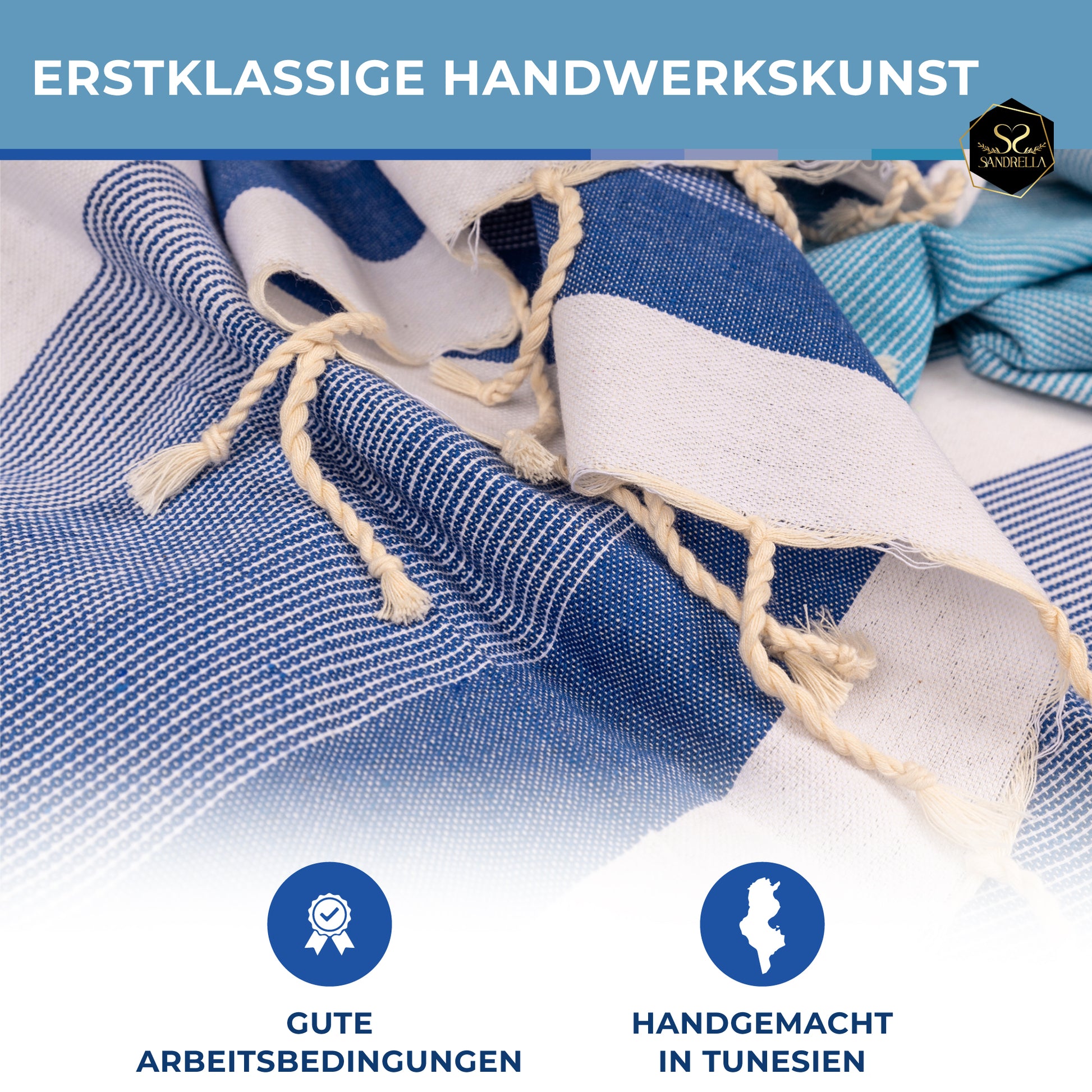 🩷 HANDGEMACHT IN TUNESIEN – Dein Hamamtuch wird mit viel Leidenschaft in Tunesien produziert. Anders als andere Händler besuchen wir unsere Hersteller regelmäßig, um gute Produktionsbedingungen und ausgezeichnete Qualität unserer Tücher zu garantieren.