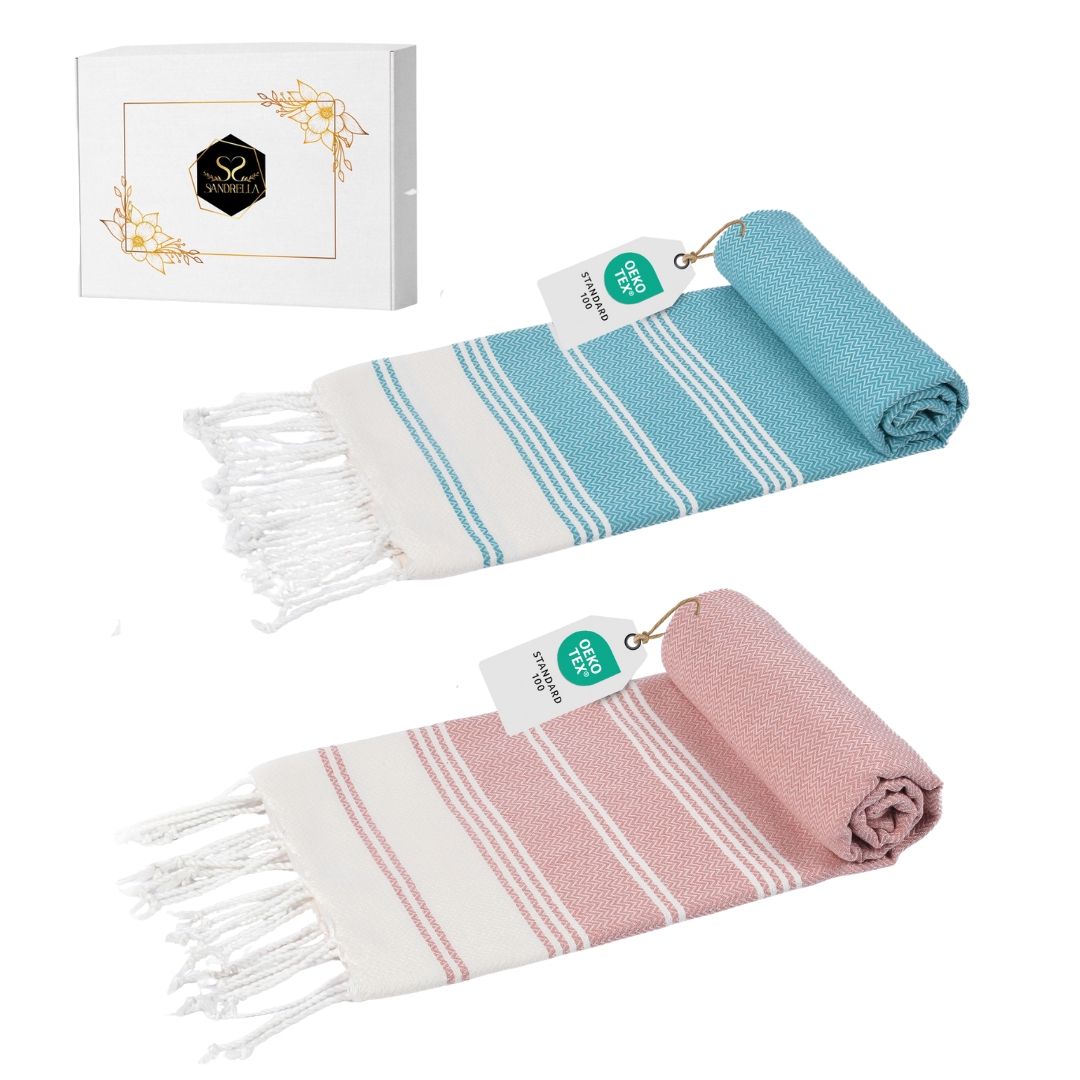 🧺 100 X 200 CM – Du genießt dein Leben im Park, am Pool oder im Sand. Das große Hamamtuch mit den Abmessungen 100 x 200 cm eignet sich zur Mitnahme. Im Rucksack ist es klein und leicht, ausgepackt ist es ein großes Badetuch oder eine Picknickdecke. Set - 2x 100x200cm