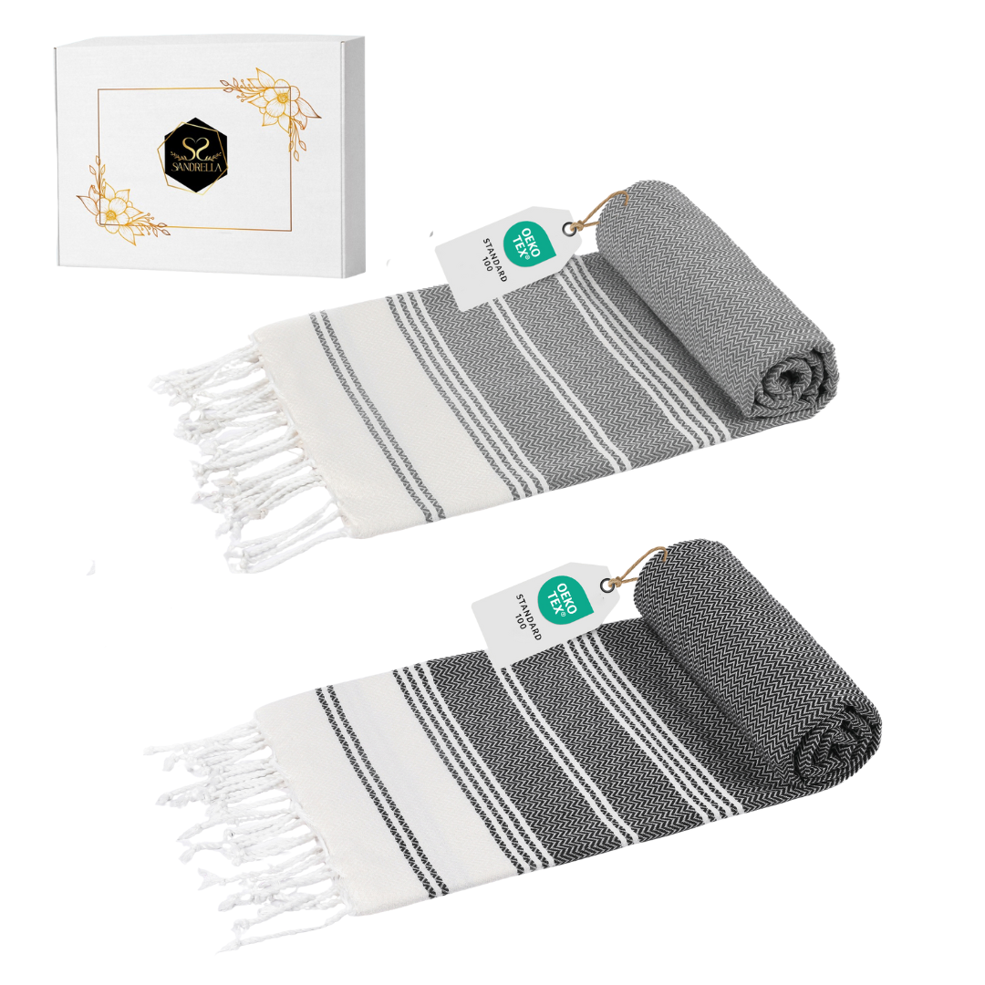 🧺 100 X 200 CM – Du genießt dein Leben im Park, am Pool oder im Sand. Das große Hamamtuch mit den Abmessungen 100 x 200 cm eignet sich zur Mitnahme. Im Rucksack ist es klein und leicht, ausgepackt ist es ein großes Badetuch oder eine Picknickdecke. Set - 2x 100x200cm