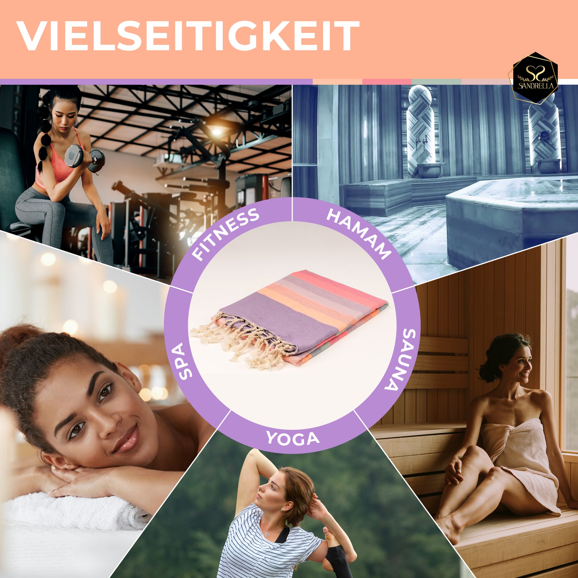 🏖️ VIELSEITIG - Unser Hamamtuch kannst du als Strandtuch, Duschtuch oder Yogatuch verwenden. Auch in der Sauna ist es der perfekte Begleiter. Durch die Vielseitigkeit sind unsere Hamamtücher ideal für Frauen oder Männer oder Paare die gerne in die Sauna, zum Strand oder Sport gehen.