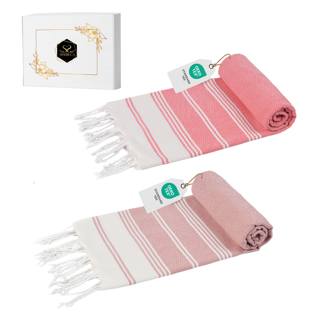 Doppelpack Hamamtuch 100 x 200 cm I rot & altrosa