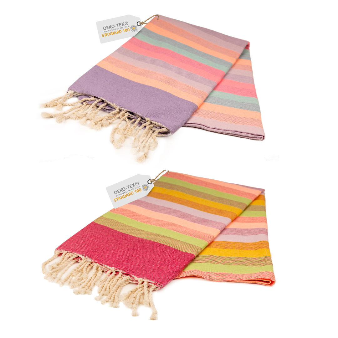 Doppelpack Hamamtuch 100 x 200 cm I rot gestreift / lila gestreift