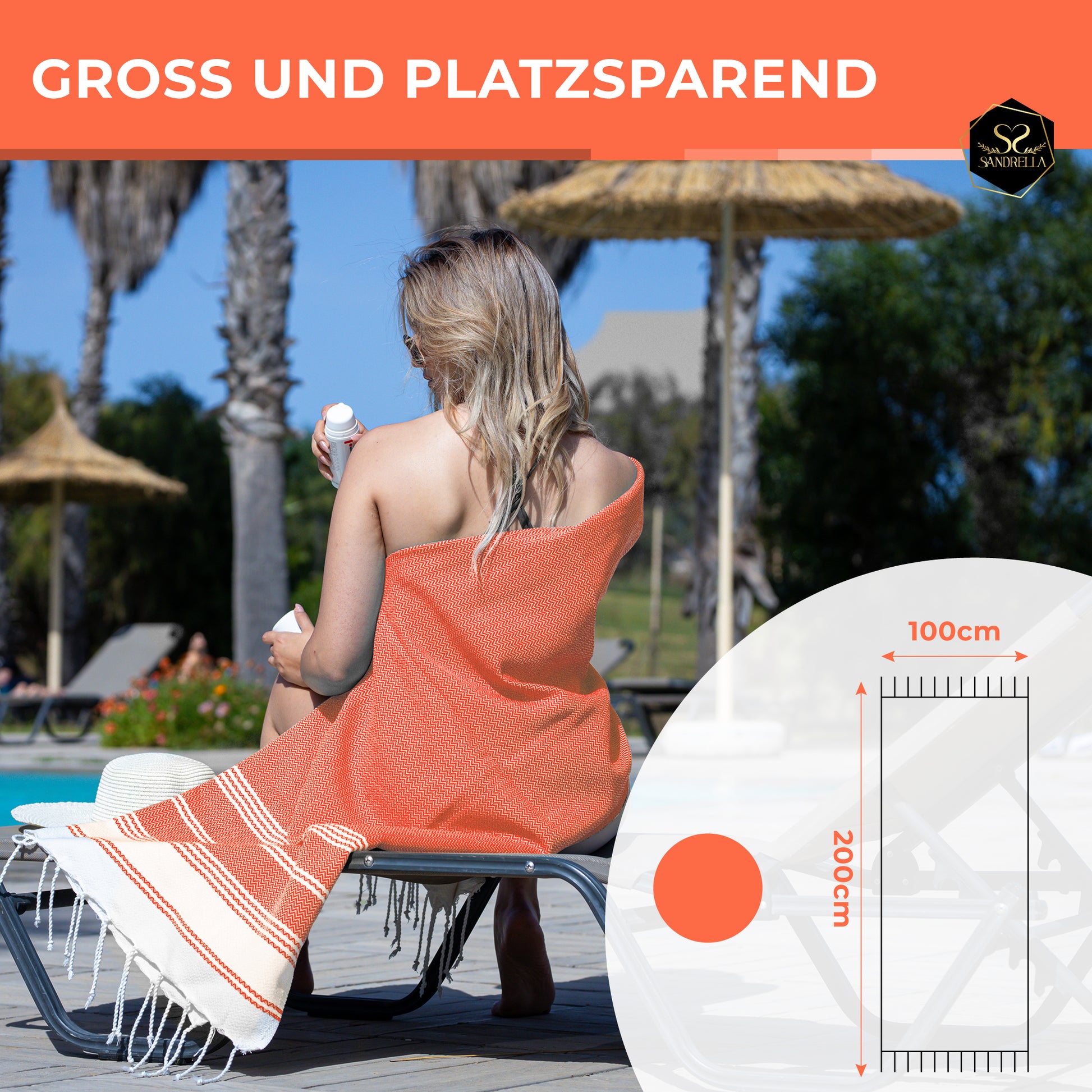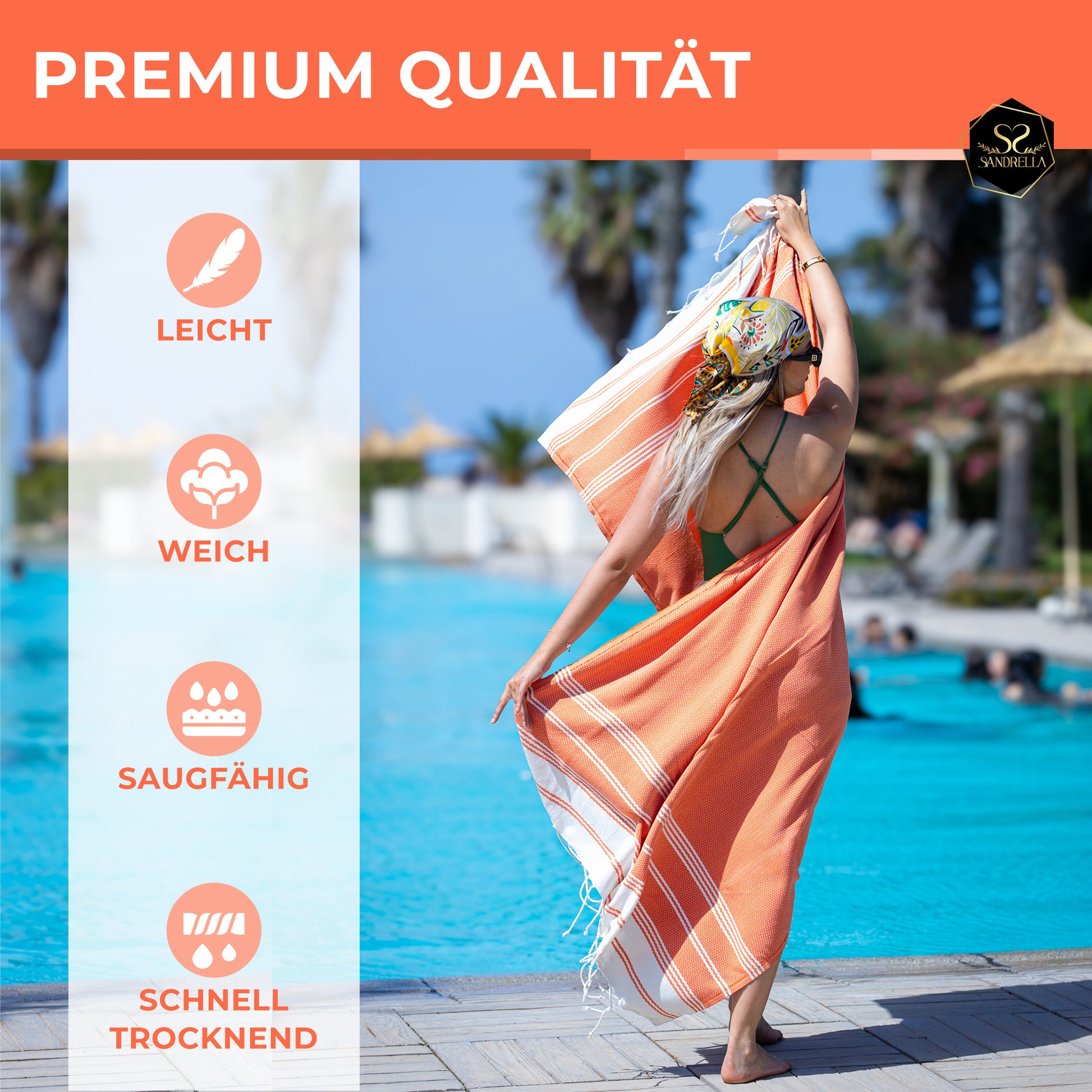 • „Hervorragende Qualität, extrem leicht und ein wunderschönes Design – und das zu einem unglaublich fairen Preis. Ich bin begeistert von den Hamamtüchern von Sandrella. Sie sind nicht nur ein elegantes Accessoire für Strandtage oder den Spa-Besuch, sondern lassen sich auch kompakt verstauen und sind der perfekte Begleiter auf jeder Reise.“