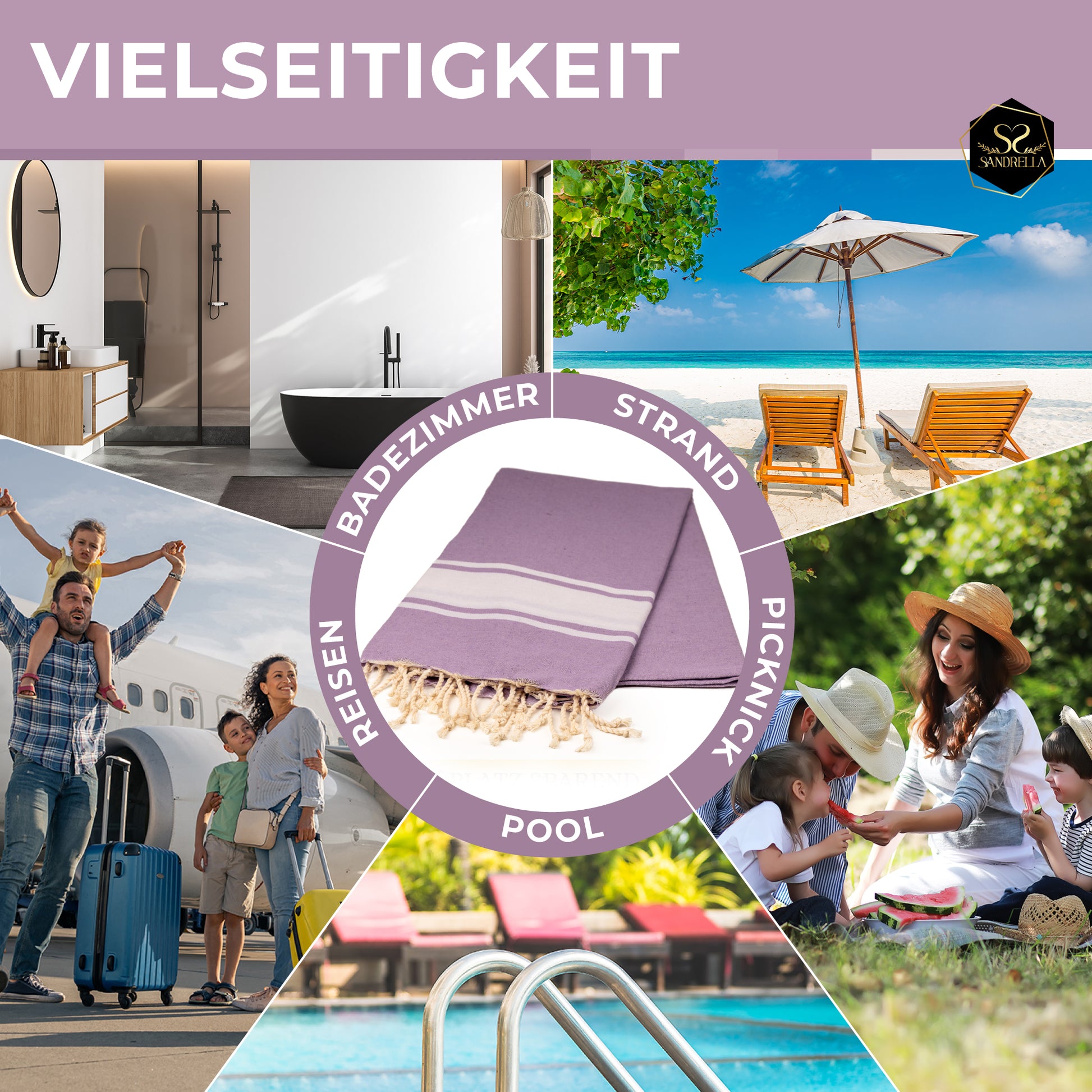 • "Top QualitĂ€t, super leicht, wunderschönes Design und das zum besten Preis.Ich liebe die HamamtĂŒcher von Sandrella, sie sind nicht nur ein stilvolles Accessoire fĂŒr jeden Strandtag oder Thermenbesuch, sondern passen in jeden Koffer und sind ein idealer Reisebegleiter.“