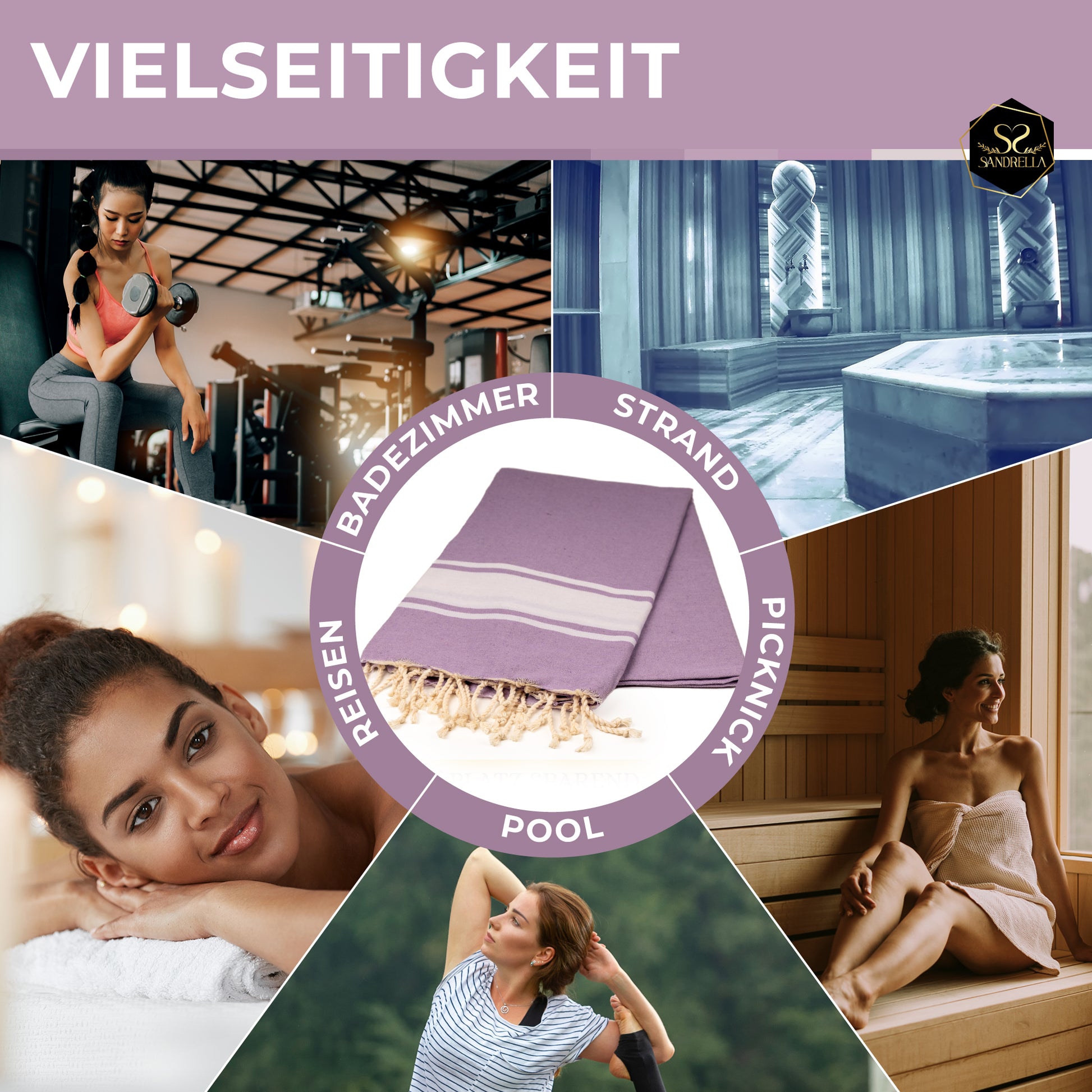 🎁 VIELSEITIG - Unser Hamamtuch kannst du als Saunatuch, Strandtuch, Duschtuch oder Yogatuch verwenden. Durch die Vielseitigkeit sind unsere HamamtĂŒcher auch ein ideales Geschenk an Frauen oder MĂ€nner, die gerne in die Sauna, an den Strand oder zum Sport gehen.