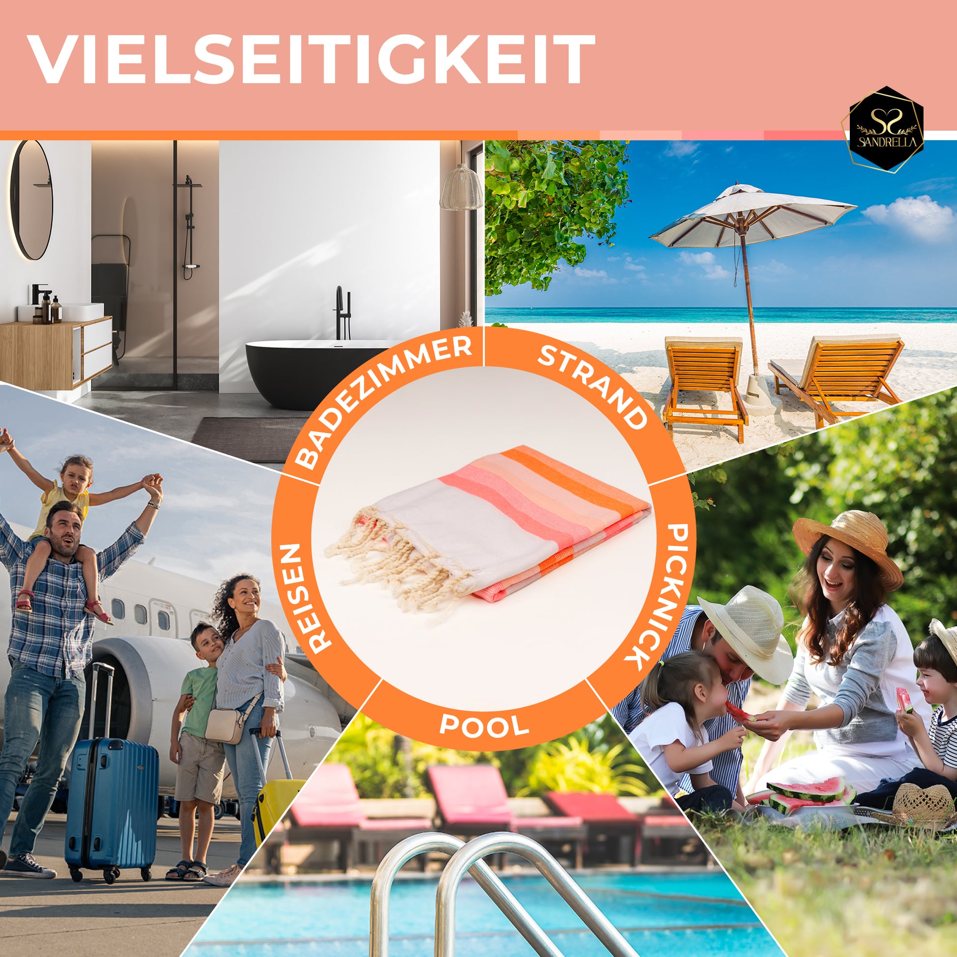 • "Top QualitĂ€t, super leicht, wunderschönes Design und das zum besten Preis.Ich liebe die HamamtĂŒcher von Sandrella, sie sind nicht nur ein stilvolles Accessoire fĂŒr jeden Strandtag oder Thermenbesuch, sondern passen in jeden Koffer und sind ein idealer Reisebegleiter.“