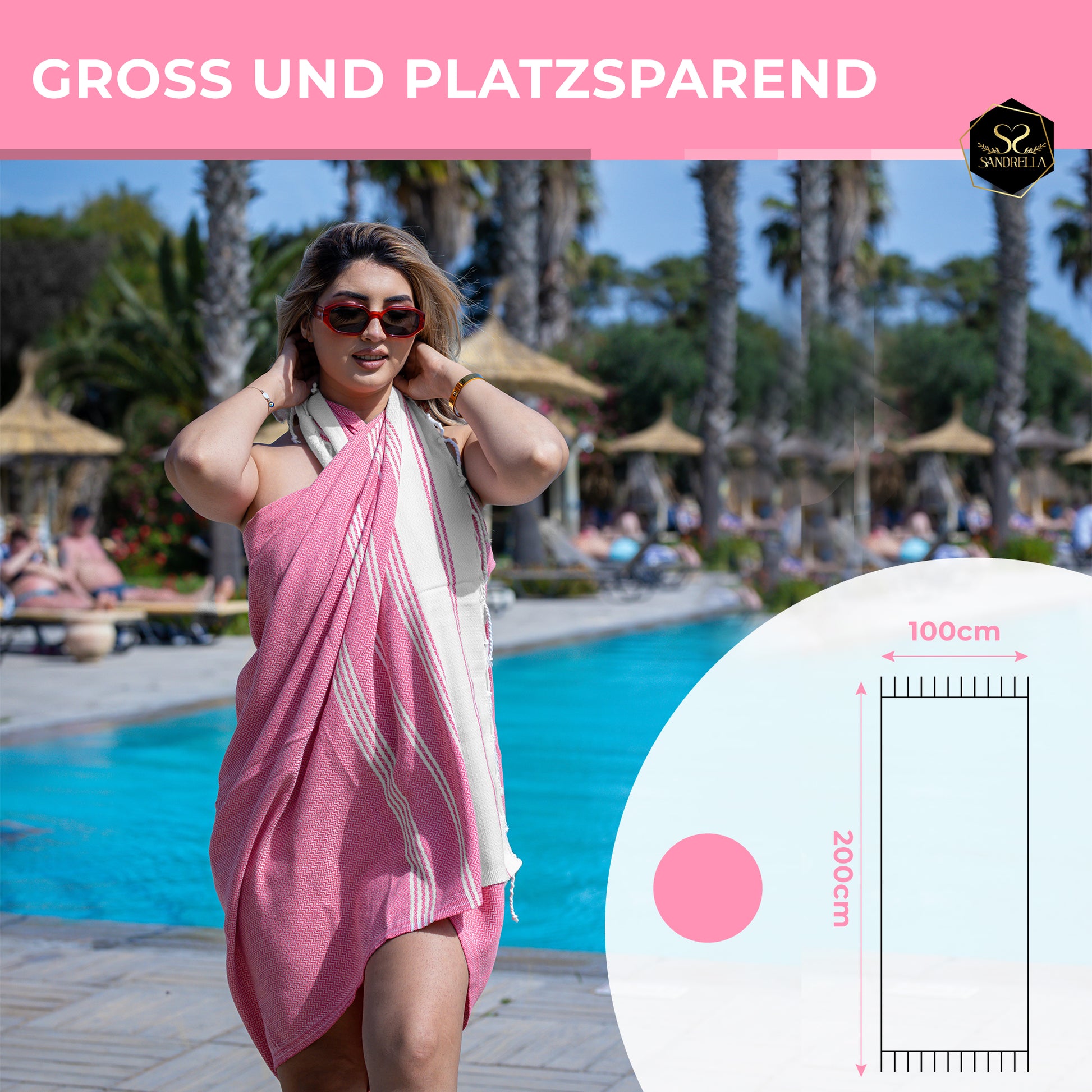 • „Hervorragende Qualität, extrem leicht und ein wunderschönes Design – und das zu einem unglaublich fairen Preis. Ich bin begeistert von den Hamamtüchern von Sandrella. Sie sind nicht nur ein elegantes Accessoire für Strandtage oder den Spa-Besuch, sondern lassen sich auch kompakt verstauen und sind der perfekte Begleiter auf jeder Reise.“