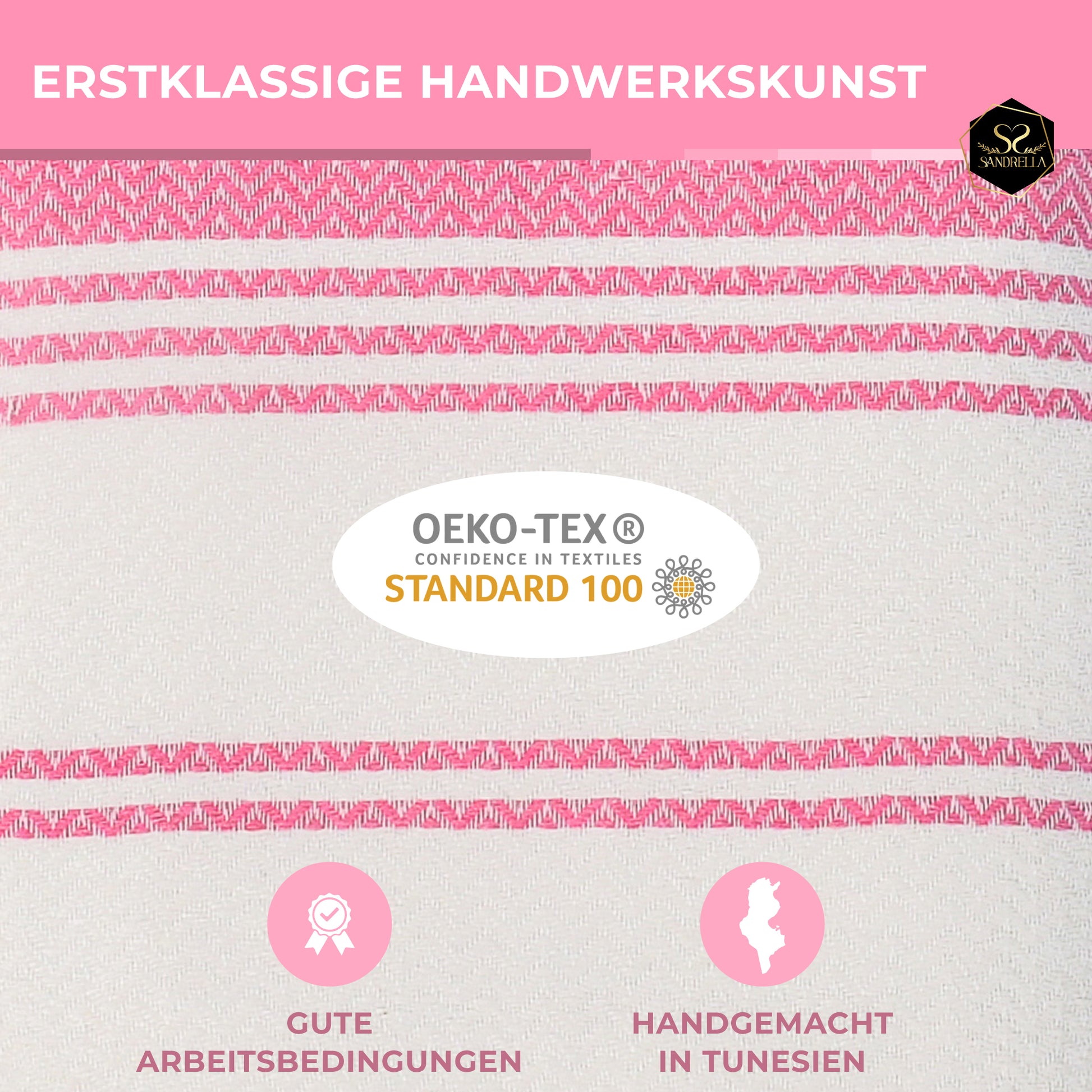 🩷 HANDGEMACHT IN TUNESIEN – Dein Hamamtuch wird mit viel Leidenschaft in Tunesien produziert. Anders als andere Händler besuchen wir unsere Hersteller regelmäßig, um gute Produktionsbedingungen und ausgezeichnete Qualität unserer Tücher zu garantieren.