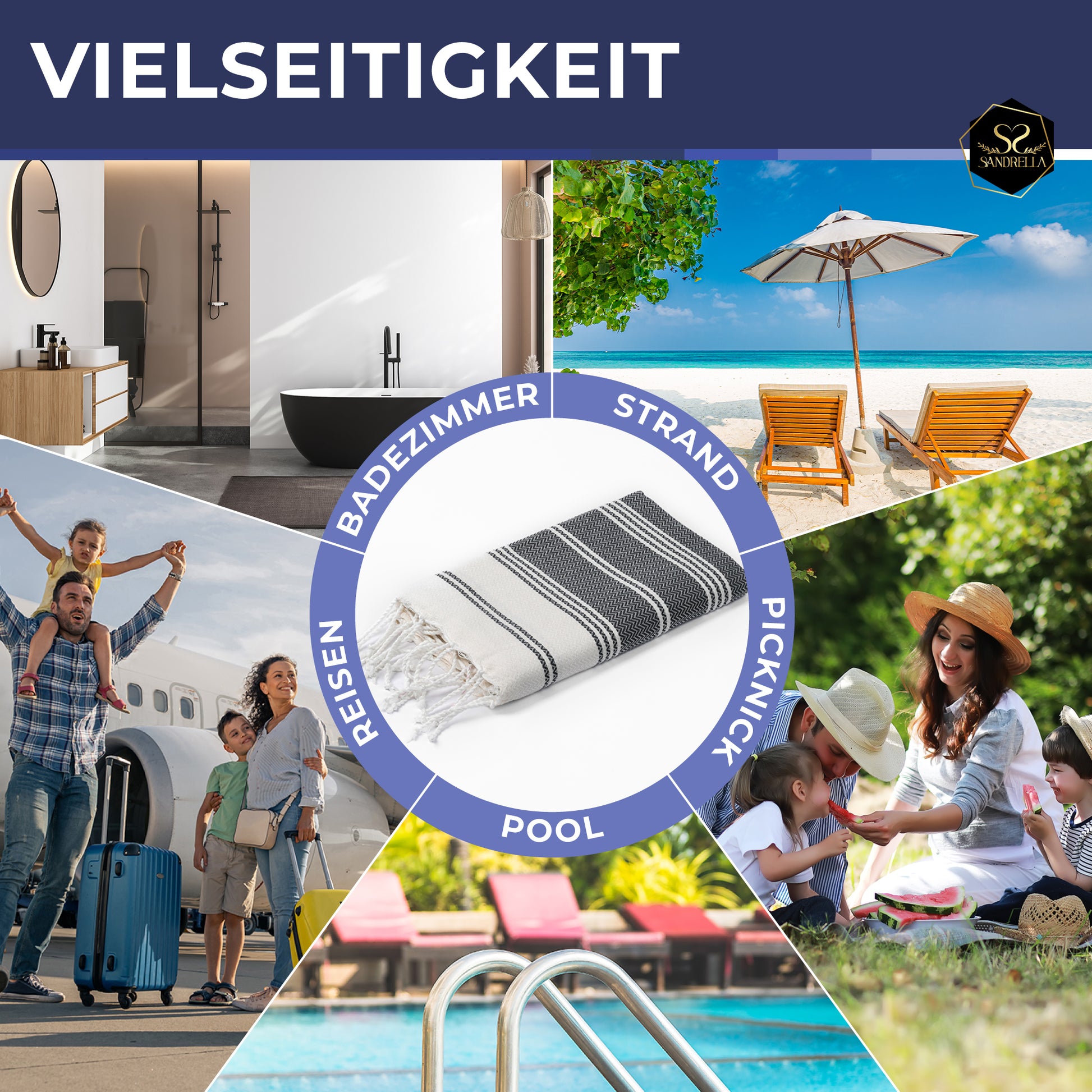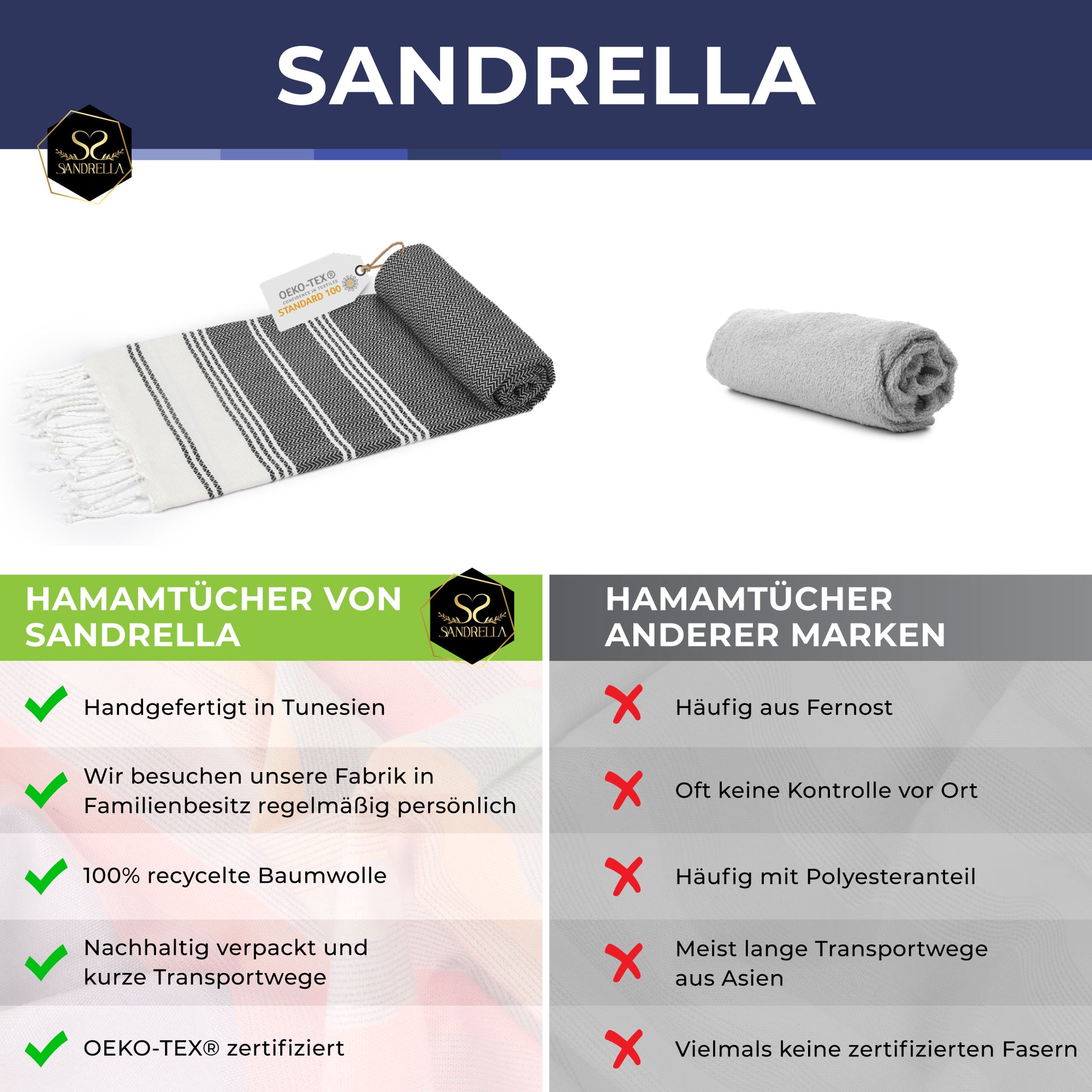• „Hervorragende Qualität, extrem leicht und ein wunderschönes Design – und das zu einem unglaublich fairen Preis. Ich bin begeistert von den Hamamtüchern von Sandrella. Sie sind nicht nur ein elegantes Accessoire für Strandtage oder den Spa-Besuch, sondern lassen sich auch kompakt verstauen und sind der perfekte Begleiter auf jeder Reise.“