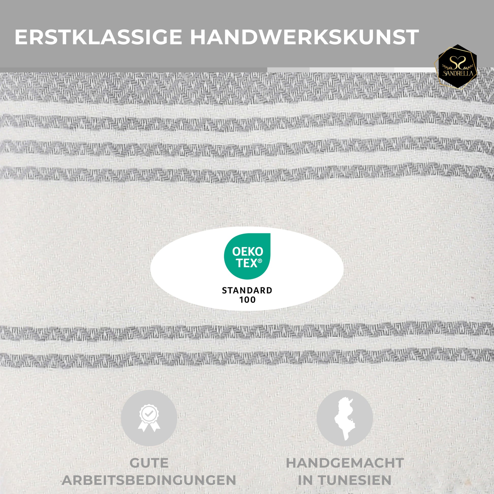 🩷 HANDGEMACHT IN TUNESIEN – Dein Hamamtuch wird mit viel Leidenschaft in Tunesien produziert. Anders als andere Händler besuchen wir unsere Hersteller regelmäßig, um gute Produktionsbedingungen und ausgezeichnete Qualität unserer Tücher zu garantieren.