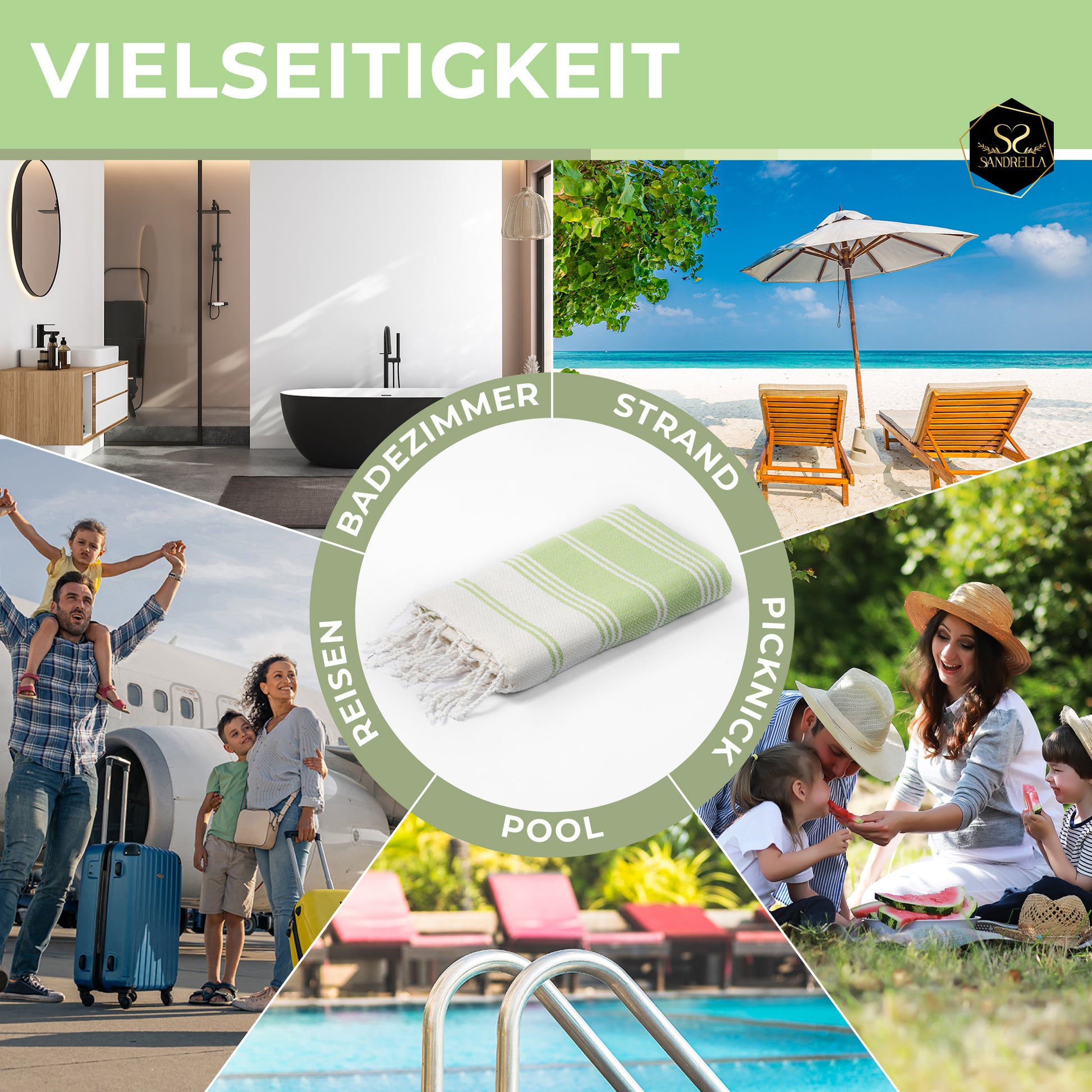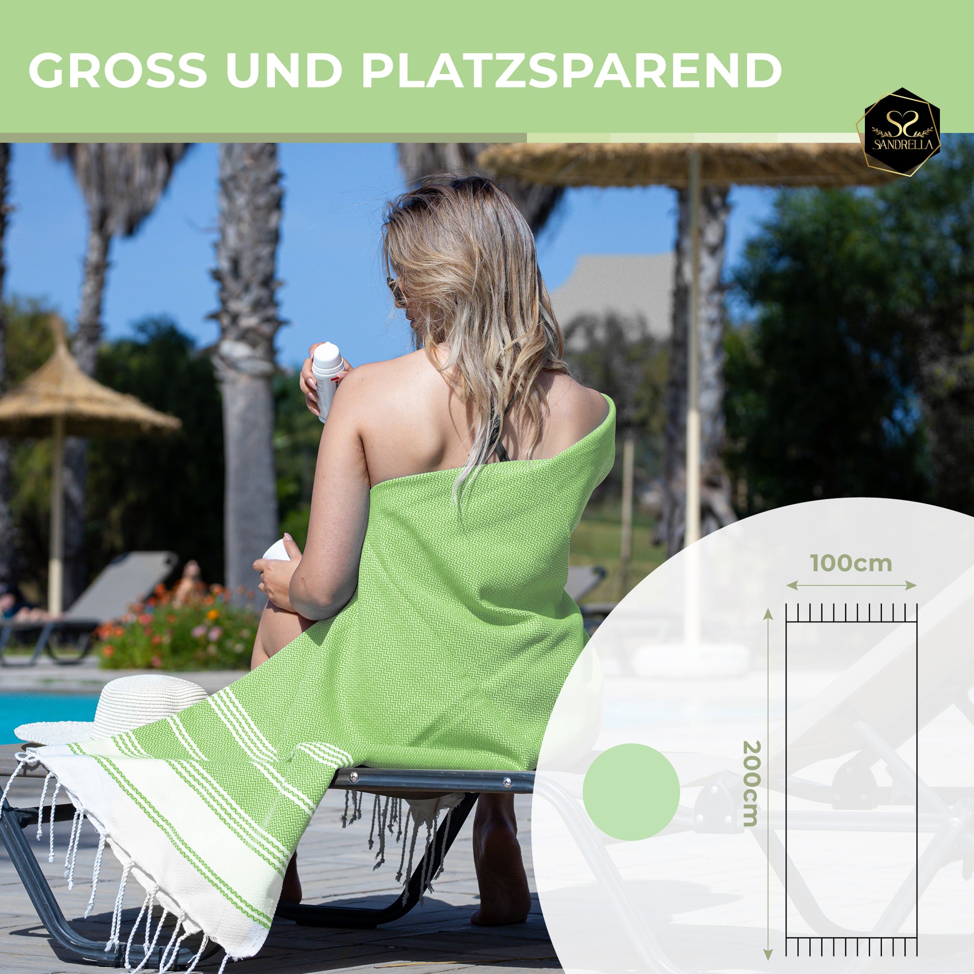 🧺 100 X 200 CM – Du genießt dein Leben im Park, am Pool oder im Sand. Das große Hamamtuch mit den Abmessungen 100 x 200 cm eignet sich zur Mitnahme. Im Rucksack ist es klein und leicht, ausgepackt ist es ein großes Badetuch oder eine Picknickdecke.