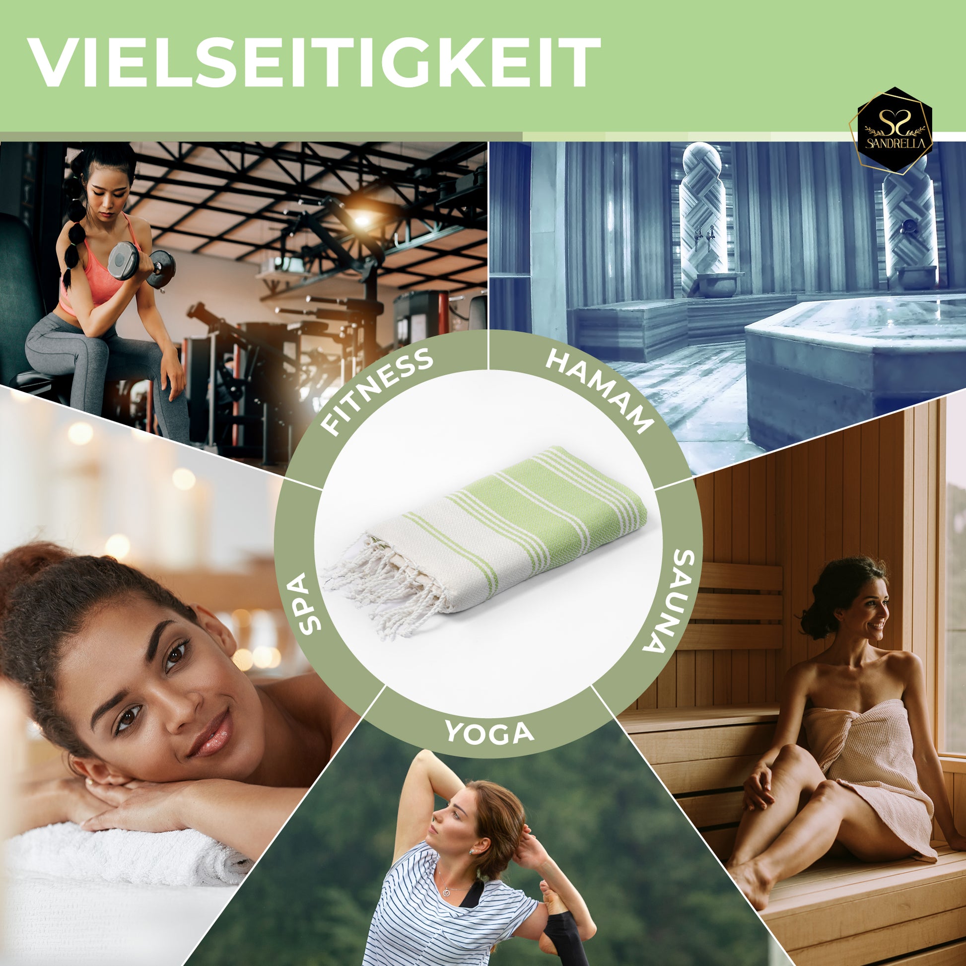 🏖️ VIELSEITIG - Unser Hamamtuch kannst du als Strandtuch, Duschtuch oder Yogatuch verwenden. Auch in der Sauna ist es der perfekte Begleiter. Durch die Vielseitigkeit sind unsere Hamamtücher ideal für Frauen oder Männer oder Paare die gerne in die Sauna, zum Strand oder Sport gehen.