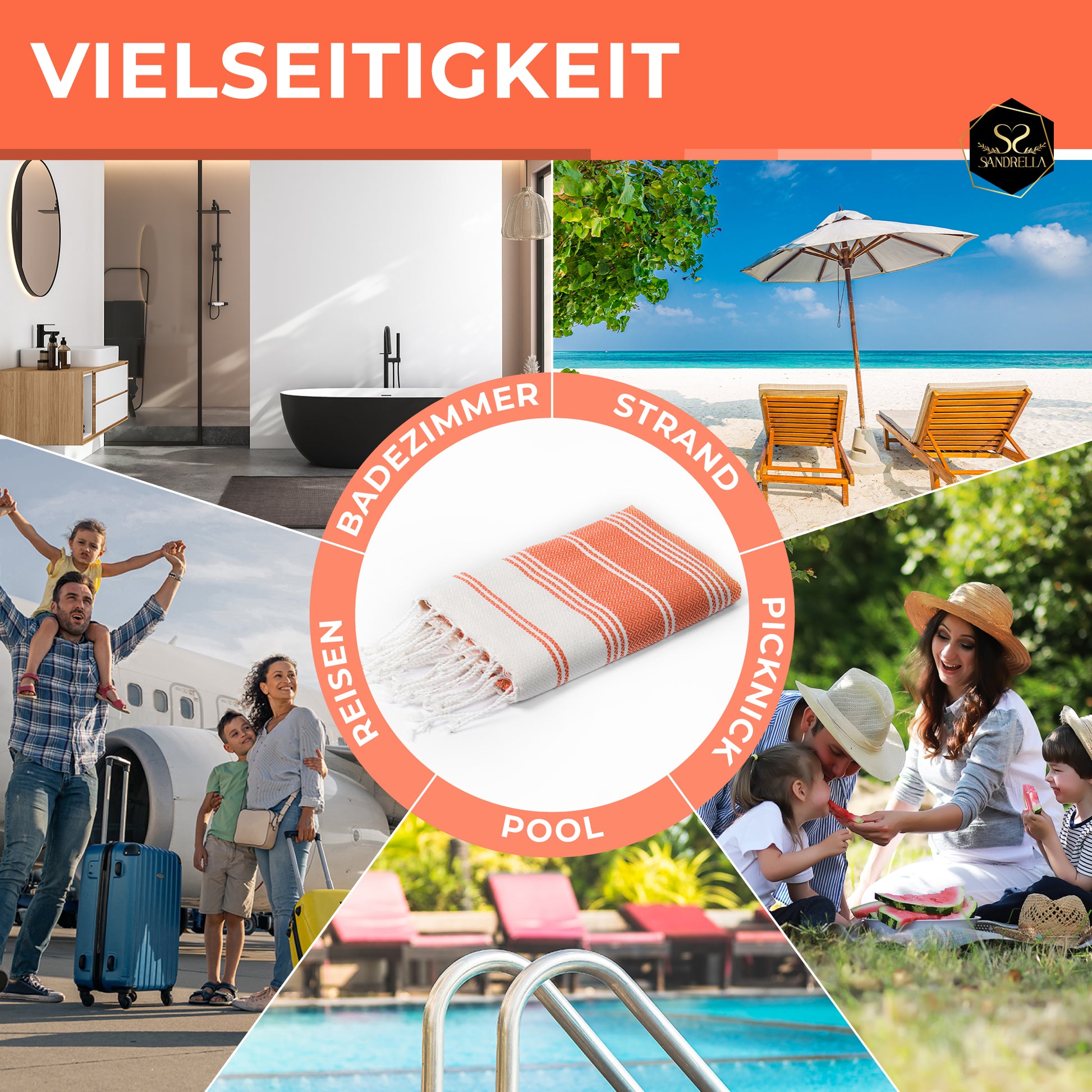 „Hervorragende Qualität, extrem leicht und ein wunderschönes Design – und das zu einem unglaublich fairen Preis. Ich bin begeistert von den Hamamtüchern von Sandrella. Sie sind nicht nur ein elegantes Accessoire für Strandtage oder den Spa-Besuch, sondern lassen sich auch kompakt verstauen und sind der perfekte Begleiter auf jeder Reise.“